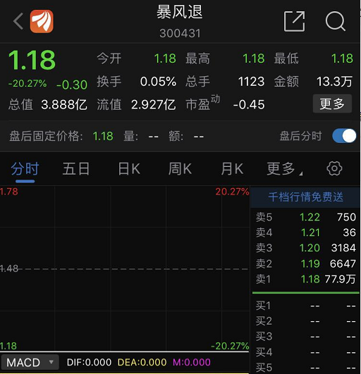 跌停板上的封单超过70万手,后续还会有很多个20%的跌停等着它,直至退市。