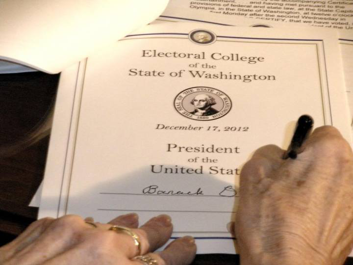 选举人团的制度中,通常情况下,选举人会按照本州大多数选民的意志将票投给预先选好的总统候选人,走个形式而已。