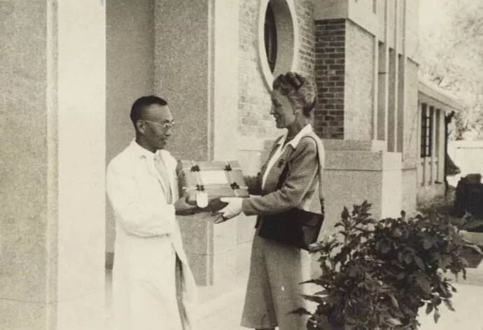 ▲ 1946年,美国医药援华会执行主任将该会向青霉素工厂提供的援助计划书递交给汤飞凡