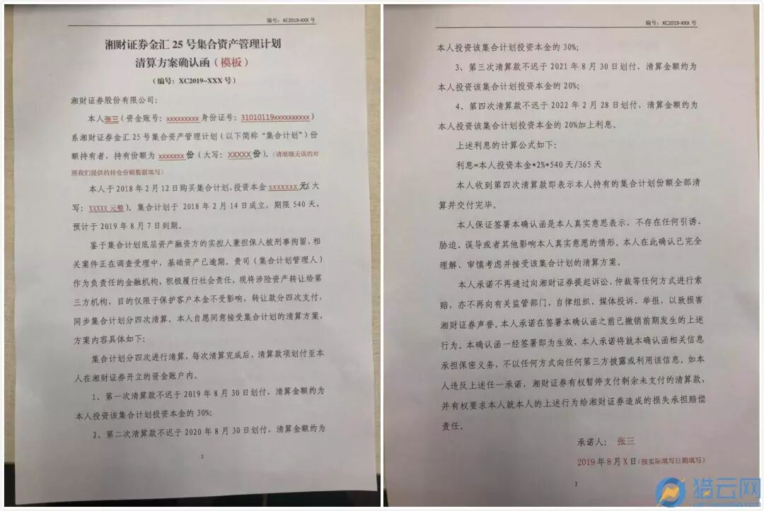 猎云网了解到,最初,投资人在签署合同过程中不能录音、不能拍照,合同里没有湘财证券盖章,未写第三方是谁,湘财也不做担保,且投资人不能持有合同。