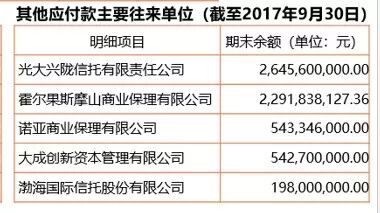 金汇系列的推介材料显示,截至2017年9月30日,广州承兴总负债87.29亿元,几乎全部来源于应收账款,其中债务人是苏宁的应收账款高达56.39亿元,占据总应收账款的64%多。但根据苏宁2017年第三季度财报显示,当时苏宁的应付账款是130多亿元。也就是说当时,苏宁当时的应付账款有40%是欠广州承兴的?