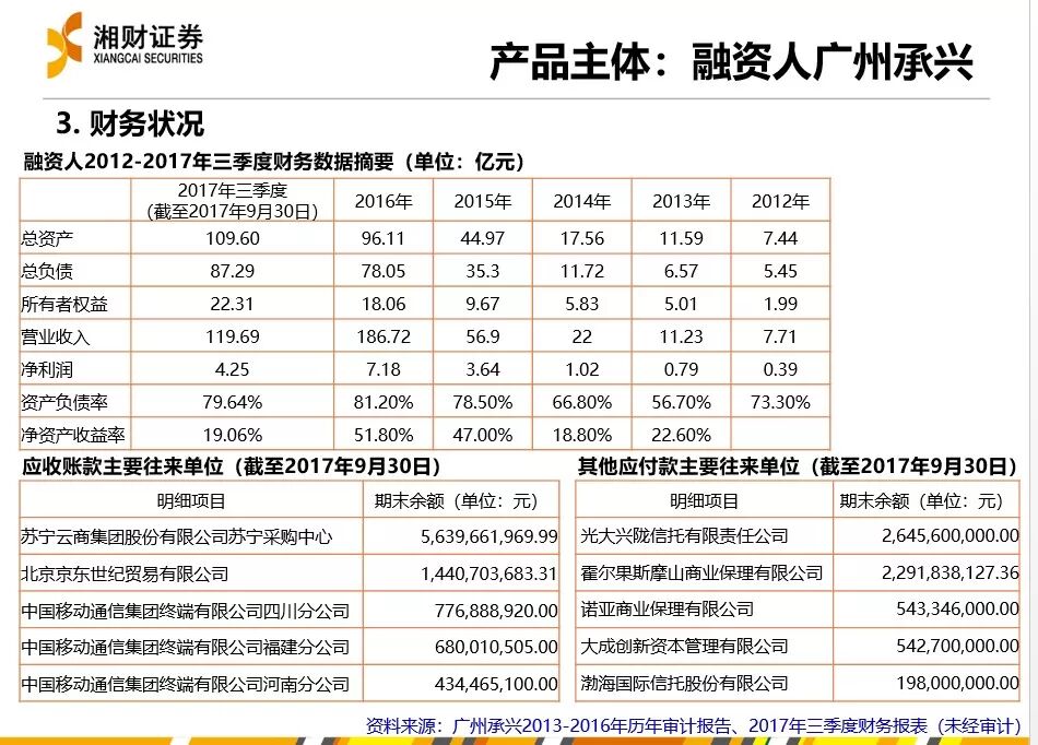 (图:广州承兴当期应收账款融资情况,来源:湘财证券金汇23号推介资料)