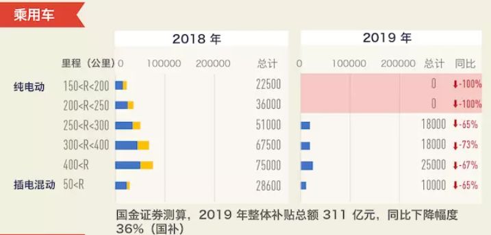 2019年国补退坡50%,地补全部取消。补贴大幅减少的情况下,全国电动车7月份开始负增长,下跌4.7%,受此影响,全球电动车市场也开始了有史以来第一次收缩。