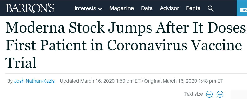 (昨晚美股暴跌,但Moderna公司股价却大幅上涨近25%)
