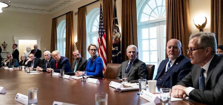 那天,特朗普和副总统彭斯、卫生和公共服务部部长Alex Azar召集10家顶级医药公司高管开会,主题就是新冠病毒疫苗研发。