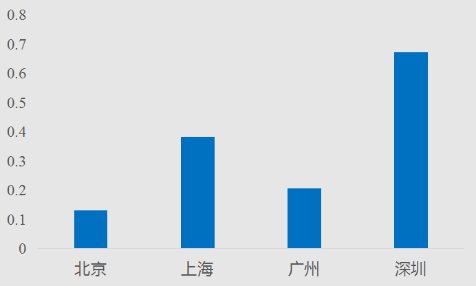 简单做个计算,深圳人口密度是北京的5倍、上海的1.8倍、广州的3.3倍。
