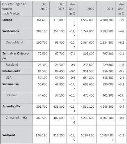 在中国的长期投入换来的是大众的高市占率。2019年,大众汽车集团共销售1097万辆汽车,蝉联全球销量第一,其中,中国销量达423.36万辆,占比约4成。