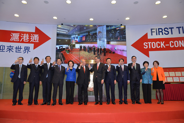 2014年11月17日,沪港通开通。香港政商各界名流出席仪式。图片来源:港交所官网