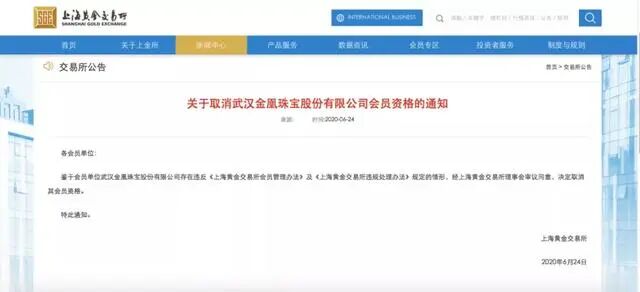 近日上海黄金交易所发布公告称,鉴于会员单位武汉金凰存在违反《上海黄金交易所会员管理办法》及《上海黄金交易所违规处理办法》规定的情形,经审议同意决定取消其会员资格。