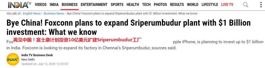 所以,这次富士康要投资10亿美元建厂,有印度媒体对这个消息,用欣喜若狂来形容一点都不过分。