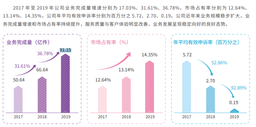 持续的“拧毛巾”动作,让圆通在行业价格战的主基调下,保持了自己的竞争力。到2019年底,公司全年完成业务量91.15亿件,同比增长36.78%,市场占有率达14.35%。在剔除了商誉减值的影响后,仍然实现了超过5%的净利润增长。