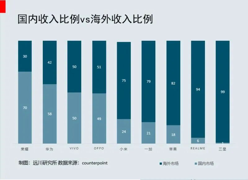 华为在国内的市场份额逆势上涨,被挤占了份额的OVM则被迫加速了流浪地球的步伐。根据 第三方数据机构Counterpoint统计,去年下半年起,OVM国产手机厂商的海外出货量首次集体超过国内。
