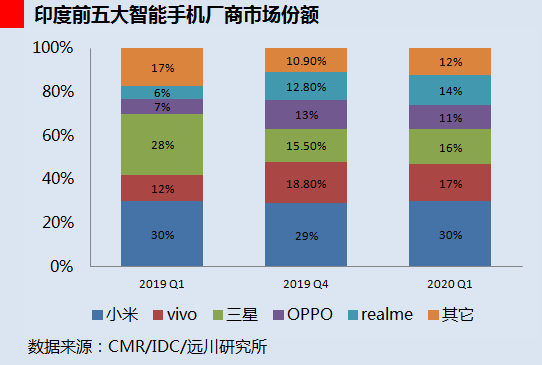 在2019年,VIVO完成了一个创举:在印度市场份额上超过三星,市场份额从年初的12%一举上升到了年末的21%。