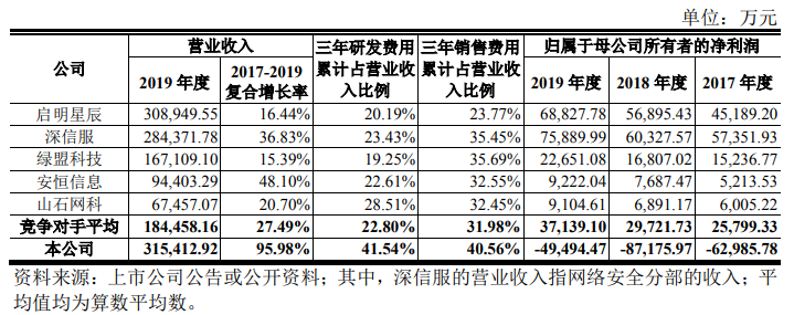 作为竞争对手的启明星辰,其2019年总营收中的销售费用和研发费用占比分别仅为22.56%和19.10%,显然奇安信想要获得长期的盈利依然任重道远。