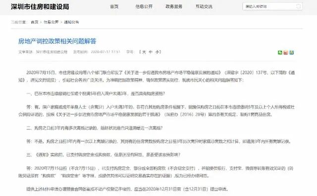 7月15日,深圳市发布《关于进一步促进我市房地产市场平稳健康发展的通知》,被称为史上最严限购政策。