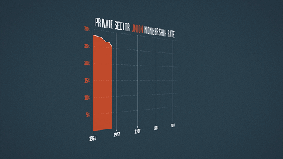 对很多中学都没读完的美国工人来说,争取工资可不是靠聪明才智,而是依赖工会的议价能力。但里根的举动却向所有美国公司传递了一个信号:工会全是纸老虎。PATCO罢工事件发生后,美国工会地位一落千丈,美国左翼几十年来的苦心经营开始走下坡路。