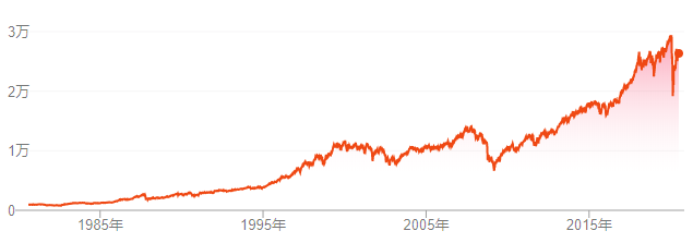 1980年至今的道琼斯指数(上)与标普500指数