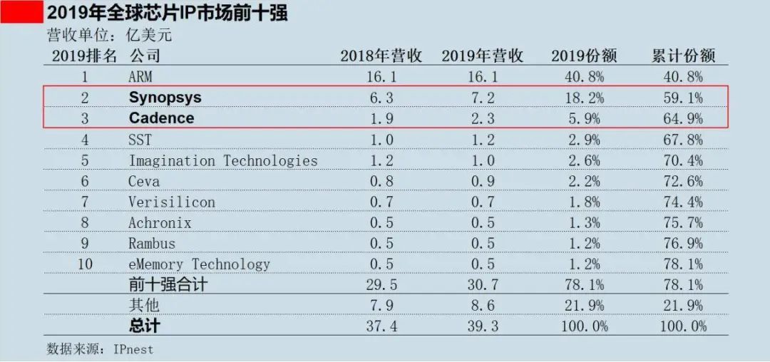 而在全球前三的IP企业中,EDA公司就占了两个,合计市场份额高达24.1%。在Synopsys的历年营收中,IP授权是仅次于EDA授权的第二业务。