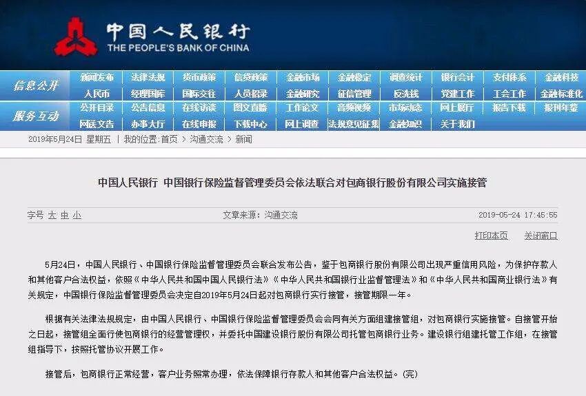 包商银行一年前就已经被央行和银保监会接管,“死兆”很清晰,如今破产也不算很令人意外。