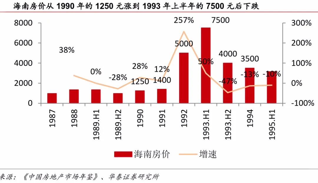 因房地产大热导致房价在两年内涨了两三倍,这在当时被认为是经济过热。而房地产大热阶段催生了一大批金融机构也蔚为奇观,有人说当时人口仅20万的海口,金融机构比人还多。