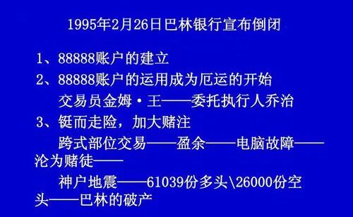 因此,战后的国际金融界,纯正的商业银行破产事件是稀有的。闹出大新闻的通常是投资银行,比如著名的巴林银行破产事件,其实巴林银行是一家投行,并不吸纳普通储户存款,干的也是各种高风险投资业务,最后倒在期货交易上。
