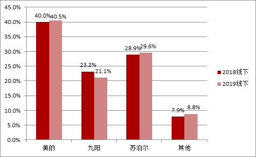 美的、九阳、苏泊尔以及其他小家电企业在线下市场份额