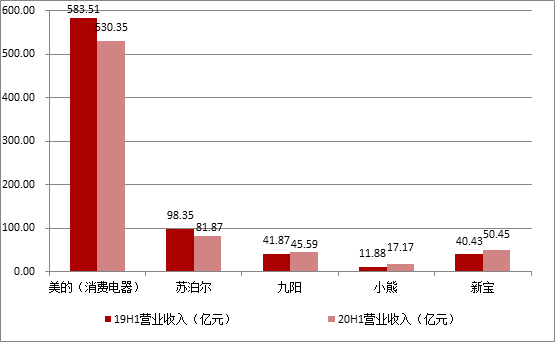 其中,根据美的2020年半年报,美的的总营收为1390.67亿元,其中消费电器分产品占总营收的38.14%,即2020年上半年美的消费电器营收约为530.35亿元,与2019年同比减少9.11%。