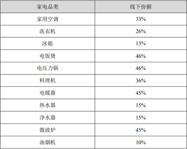 下图为美的2020年上半年的主要家电产品线下市场份额: