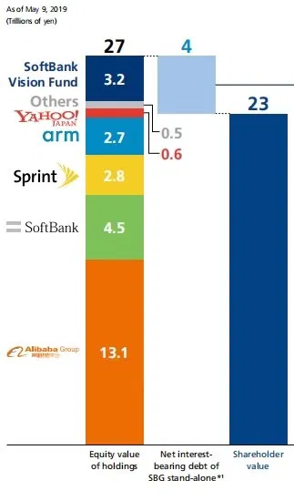 软银集团资产价值构成,截至2019年5月9日,单位:万亿日元