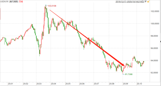 (美元指数走势,来源:Wind)