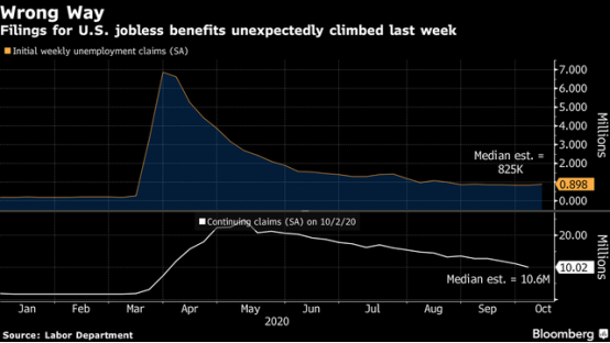 10月15日,美国劳工部公布数据显示,美国上周首次申请失业救济人数为89.8万人,大大高于市场预期,达到8月以来最高水平。随着申请各州失业救济人数意外激增,以及更多美国人转向申请更长期的失业救济,美国经济复苏步伐放缓之势已经非常明显。许多经济学家预计,美国劳动力市场可能要到2023年后才能完全恢复。