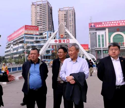 2018年初,朱新礼(右2)率考察团到云南河口进行投资考察