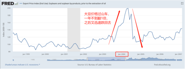 2004年大豆危机期间暴涨暴跌的大豆价格。来源:圣路易斯联储。